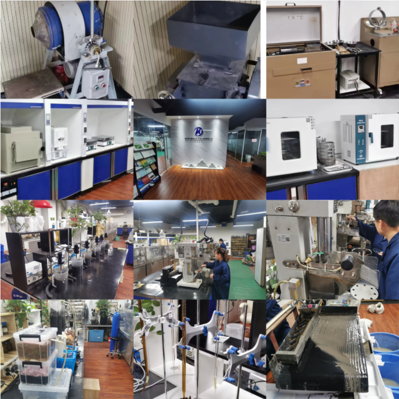我院拥有专业的选矿工艺技术研究团队与矿石检测团队,同时选矿试验设备配套齐全,拥有样品加工破碎室、磨矿室、浮选室、浸出室、取样室、过滤烘干室、重选室、磁选室等;配有强磁设备、浮选柱等先进选矿设备及仪器,拥有重选、磁选、浮选、浸出等试验设备。目前可进行金、银、铜、铅、锌、钨锡、钼、铁、钛、钒、铌钽、铝土、石墨、萤石、石英砂、磷矿等各种金属和非金属矿的选矿工艺试验研究。能提供各种选矿方法和选矿条件试验,形成选矿试验报告,并给出合理化的选矿工艺流程方案。我院先后完成了有色金属(铜、铅、锌等)、贵金属(金、银)、重金属(钨、锡)及非金属矿(萤石、石墨等)矿石试验,取得了一系列科技成果,如高碳金矿处理、钨锡矿综合回收率提高、低品位金矿尾矿综合回收金、铅锌尾矿综合回收、难选铁矿精粉品位富集、氧化铅氧化锌回收率提高,钢厂机头灰综合回收,冶炼厂黑渣综合利用等试验项目。