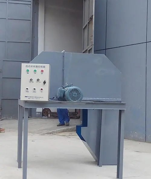 从皮带给料机上对破碎后的样品进行采样(缩分)。其特点是体积小,不发生堵塞,其工作过程平稳可靠,无噪音。